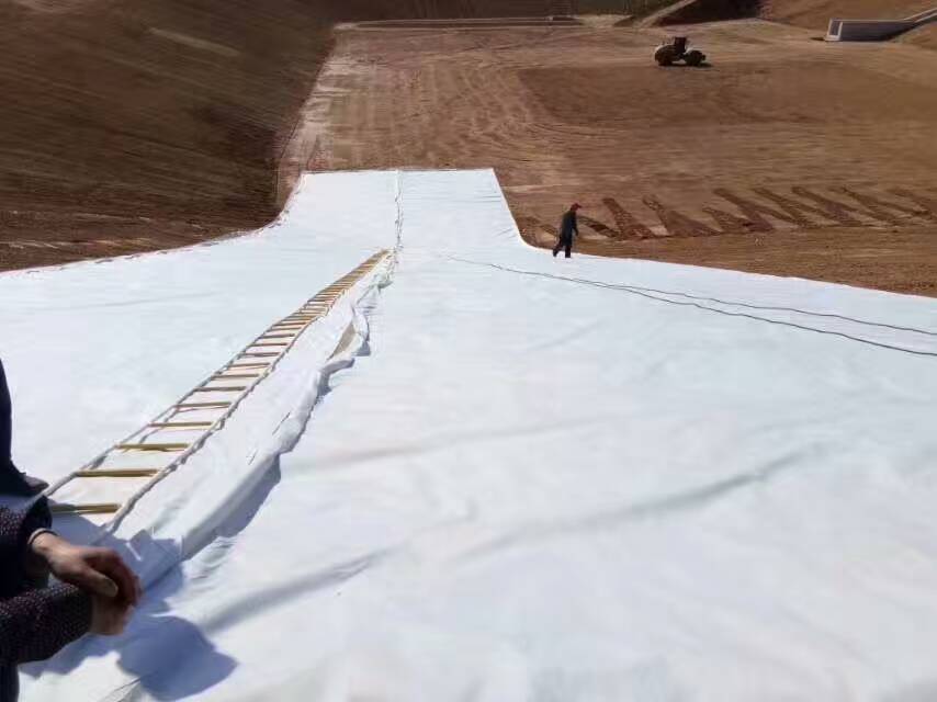 施工步驟.應(yīng)從底部向高位延伸,不要拉得太緊,應(yīng)留有1.50%的余幅,以備局部下沉拉伸。考慮到本工程的實際情況,邊坡采取從上到下的鋪設(shè)順序;